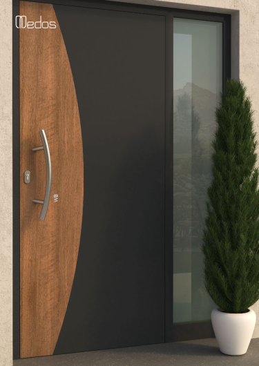Pochwyt ma lekko wygięty kształt, który pasować będzie do drzwi asymetrycznych lub ozdobi drzwi proste, minimalistyczne. Pochwyt można zastosować tylko od strony zewnętrznej albo obustronnie.