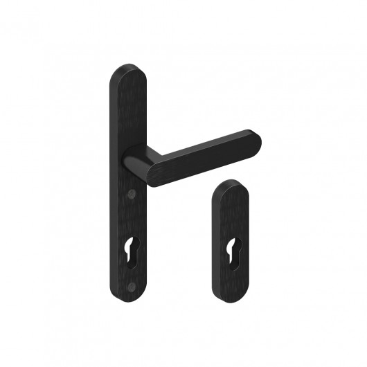 Klamka do drzwi + szyld głowny do pochwytu jednostronnego FrontLine Brussles 35 mm F9005 / czarna szyld owalny rozstaw 92 mm