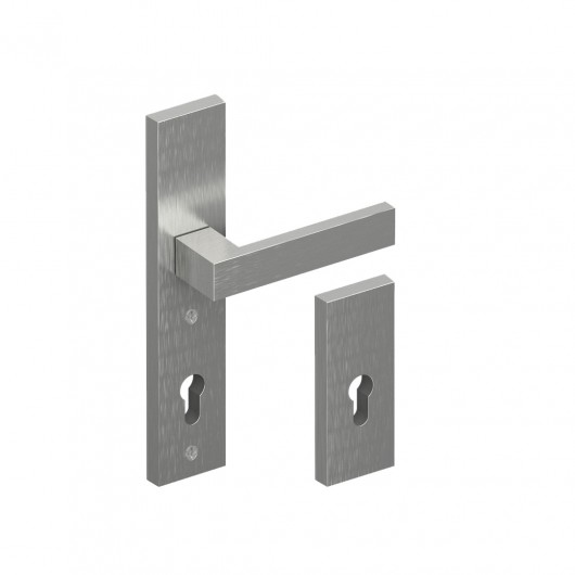 Klamka do drzwi + szyld głowny do pochwytu jednostronnego FrontLine Dublin 50 mm F6 (INOX) szyld prostokątny rozstaw 92 mm