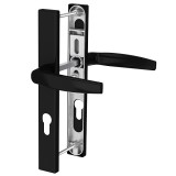 Część wewnętrzna jest wyposażona w mechanizm wspomagający utrzymanie pozycji klamki. Śruby montażowe oraz trzpień są dostarczone wraz z produktem. Klamkę znajdziemy w 3 rozmiarach (odległość pomiędzy klamką, a wkładką bębenkową) – 72, 85 i 92 mm oraz w 3 szerokościach szyldu- 32, 36 i 52 mm. Produkt dostępny jest w dwóch wersjach kształtu maskownicy - prostokątnym i owalnym. Strona montażu jest uniwersalna. Maskownica zakrywająca śruby montażowe dodaje klamce prostoty i elegancji.