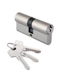 Produkt wykonany z mosiądzu pokrytego niklem, dzięki czemu jest odporny na zniszczenia, nie zacina się, nie śniedzieje, a kolor niklu (szary) sprawia, że dobrze komponuje się z większością okuć, nie zaburzając estetyki- dla perfekcjonistów wśród klientów. Estetycznie zaczesana powierzchnia wkładki elegancko prezentuje się w Waszych klamkach i drzwiach. Wkładka bębenkowa może być zamontowana jako zabezpieczenie do różnych drzwi, np. piwnicy, komórki czy też schowka w domu. Dzięki temu wiesz, że nikt niepożądany nie będzie mógł się dostać do Twoich cennych przedmiotów.