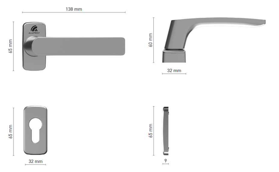 Klamka do drzwi ALUPROF CLASSIC pojedyncza z szyldem RAL 9006 / srebrna