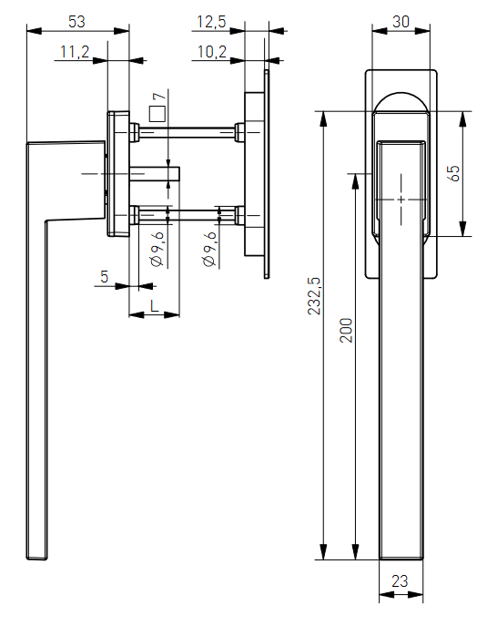 Możliwość zamówienia klamki z trzpieniem o długości 60 mm lub 80 mm.