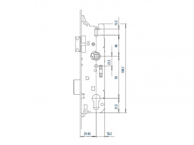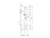 Zamek do drzwi zewnętrznych - główny, zapadkowo-ryglowy. Wykonany ze stali ocynkowanej.